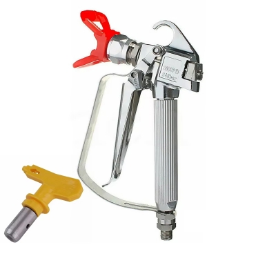 Пневматический распылитель Spaypro с насадкой высокого давления — это инструмент, предназначенный для точного распыления различных жидкостей под высоким давлением. Изготовлен из прочного алюминиевого сплава. Распылитель оснащен безвоздушным соплом с давлением до 3600 PSI, что позволяет достичь высокой производительности и равномерного распыления. В комплект входят два сопла: желтое с размерами 50 * 55 мм и красное с размерами 60 * 45 мм, что делает устройство универсальным для различных задач. Компактные размеры (215 * 120 мм) и удобная конструкция обеспечивают комфорт в работе. В упаковке: 1 безвоздушное устройство, 1 сопло и 1 основание сопла, что позволяет сразу приступить к использованию инструмента.